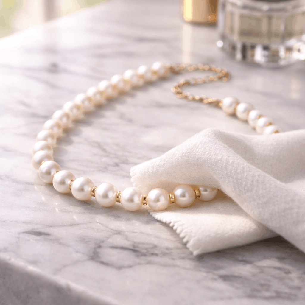 Cuando llegues a casa, quítate las perlas lo primero. Antes de lavarte la cara o las manos. Antes de ponerte crema de noche. Quítatelas y pásales suavemente un paño suave. Esto elimina los aceites de la piel antes de que se acumulen y apaguen el brillo. Tarda unos treinta segundos. Pero este hábito sencillo evita la mayor parte del daño que ocurre por el uso diario. Estás quitando la suciedad antes de que se convierta en un problema que requiere limpieza profunda.